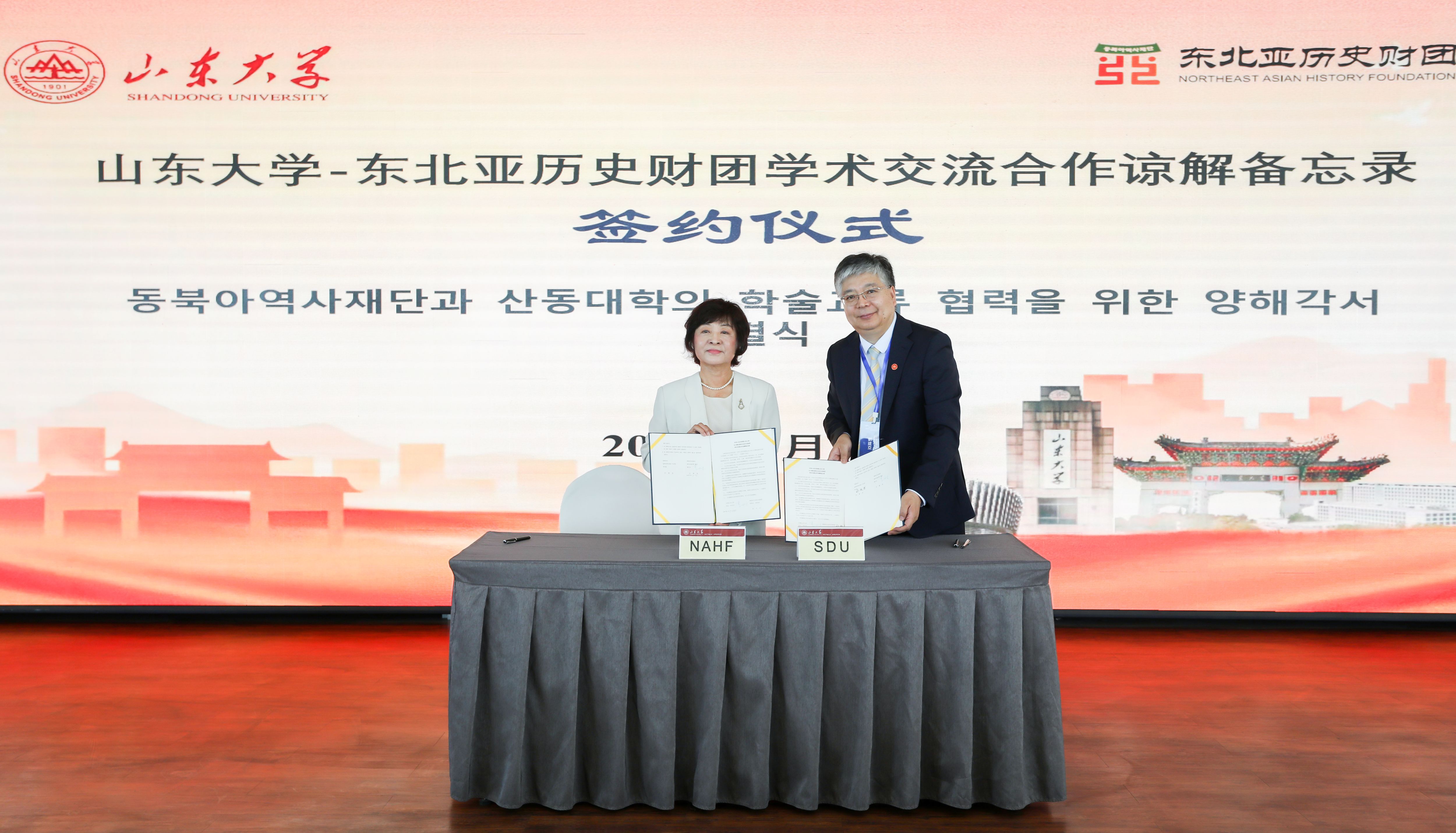 与韩国东北亚历史财团的合作,将有利于讲好中韩人文交流新故事,研讨协同发展新方案,为教育开放合作注入新动能,希望东北亚历史财团和各位专家学者从历史的视角和现实需求,深入探索东北亚区域内相互合作重要意义和可行方案,不断推进东北亚地区和平稳定和繁荣发展,为服务中韩友好合作大局、推动构建人类命运共同体贡献智慧和力量。