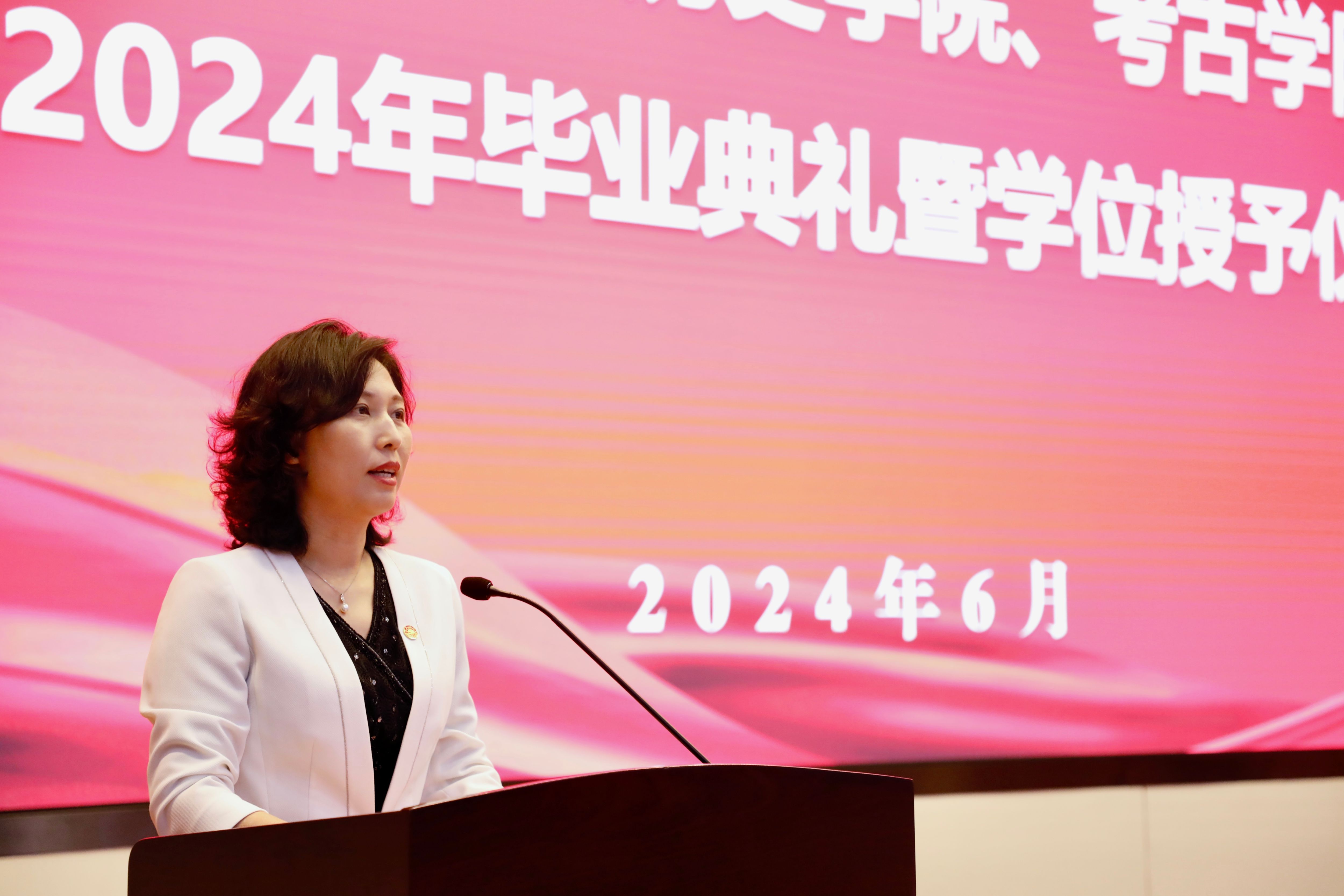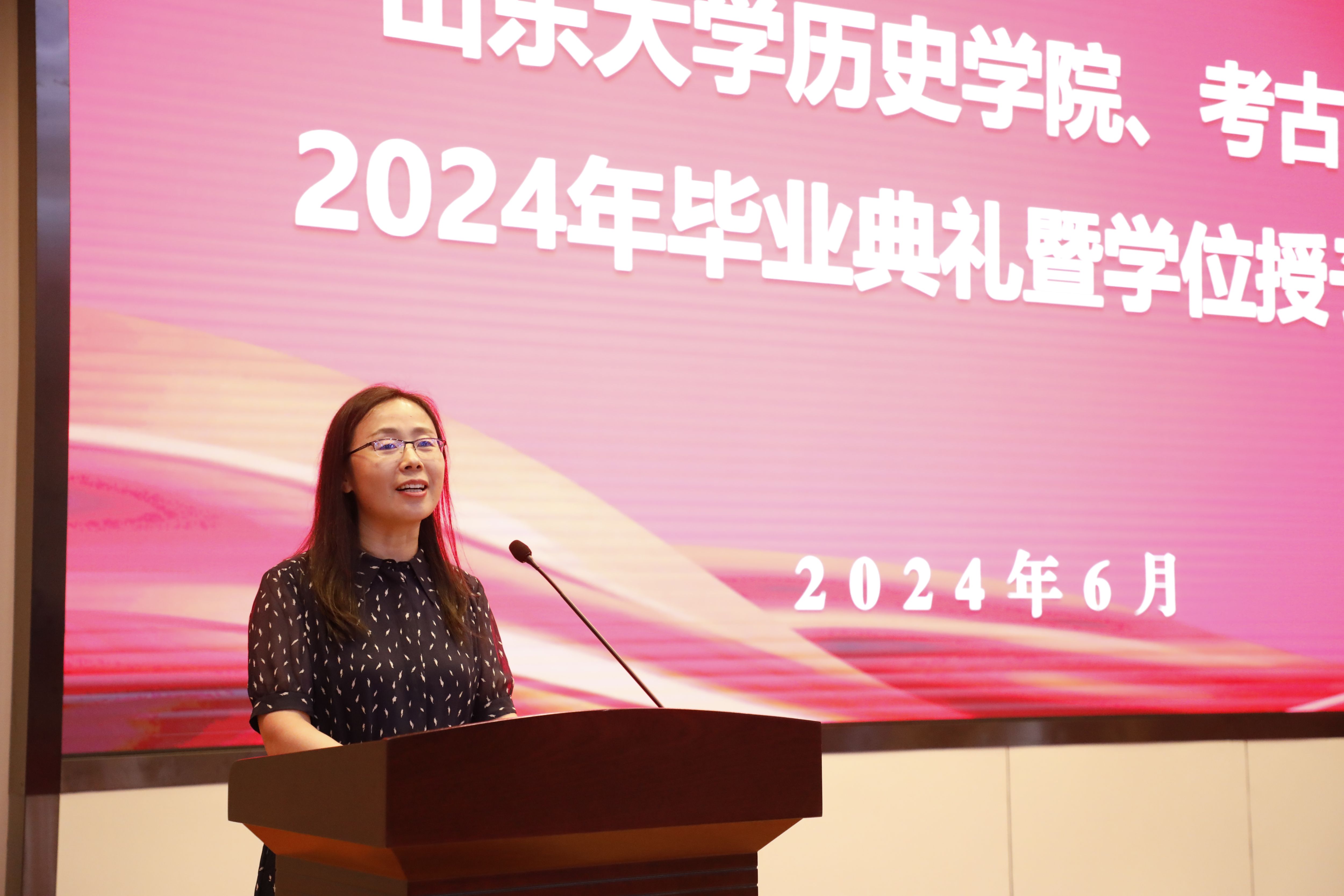2021级考古学专业硕士研究生武莹莹、2020级历史学专业本科生高一诺分别代表毕业生发言,回顾了在山大珍贵的求学时光,体悟了教师对学生的滋养与影响,表达了对学校、学院、师长的真挚谢意。他们表示,要找到并坚持自己的人生选择,不忘初心、投身实践、回报社会,不辜负母校的培养与期望,在不同的地方绽放更精彩的自我,将个人志趣融入国家复兴,在奋斗中实现人生理想。