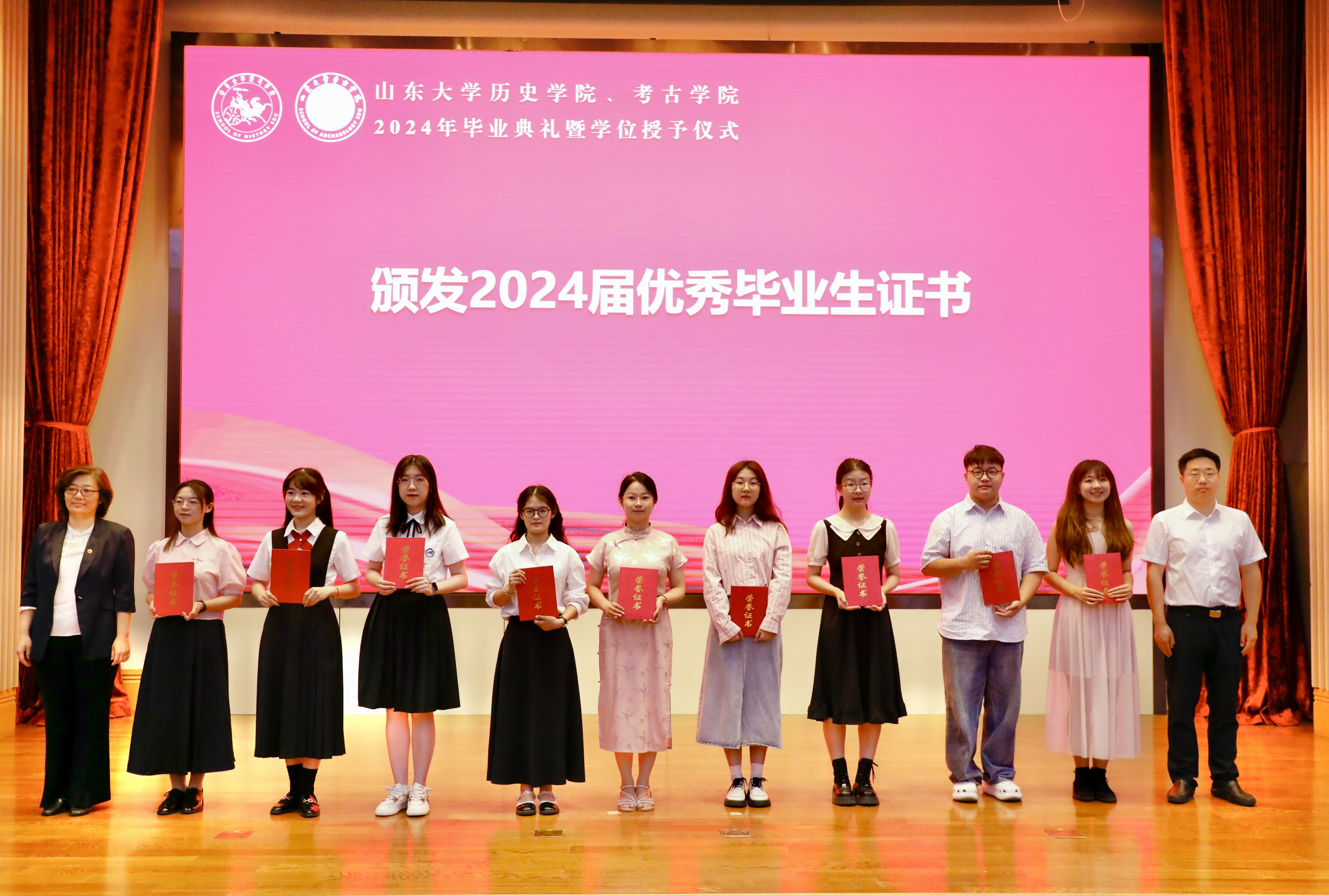 关于表彰2024届优秀毕业生的决定》,王芬、代国玺为获评“山东省优秀毕业生”荣誉称号的毕业生代表颁发证书。