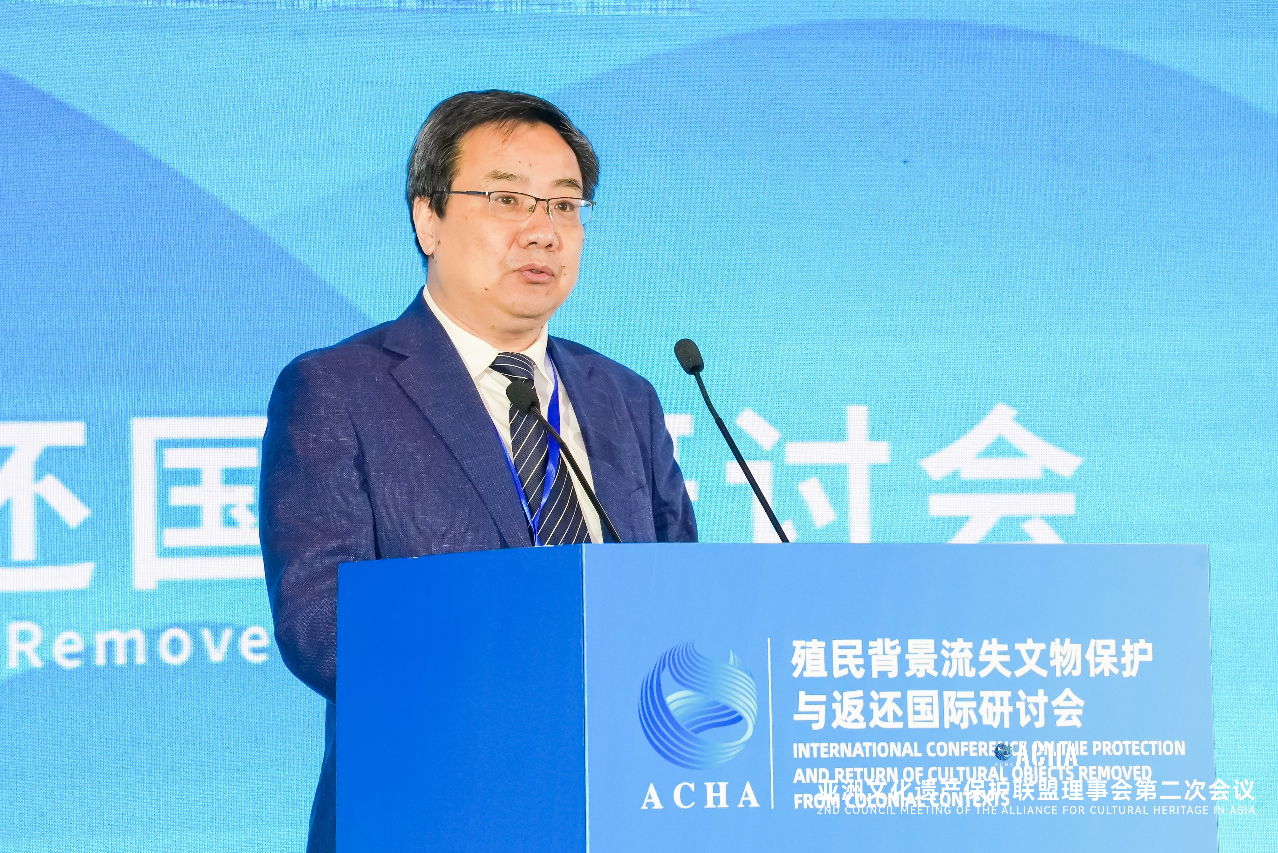“殖民背景流失文物保护与返还国际研讨会”为亚洲文化遗产保护联盟理事会第二次会议配套活动,来自27个国家、2个国际组织及中国有关部委、高等院校、科研机构和文博单位的150位代表出席会议。研讨会发布了成果文件《关于保护和返还殖民背景下流失或通过其他非正义、非道德方式获取之文物的青岛建议书》。期间,美国芝加哥大学夏德安(DonaldHarper)教授将该校图书馆收藏长沙子弹库战国楚帛书第二卷和第三卷在美国流转的物证移交国家文物局。