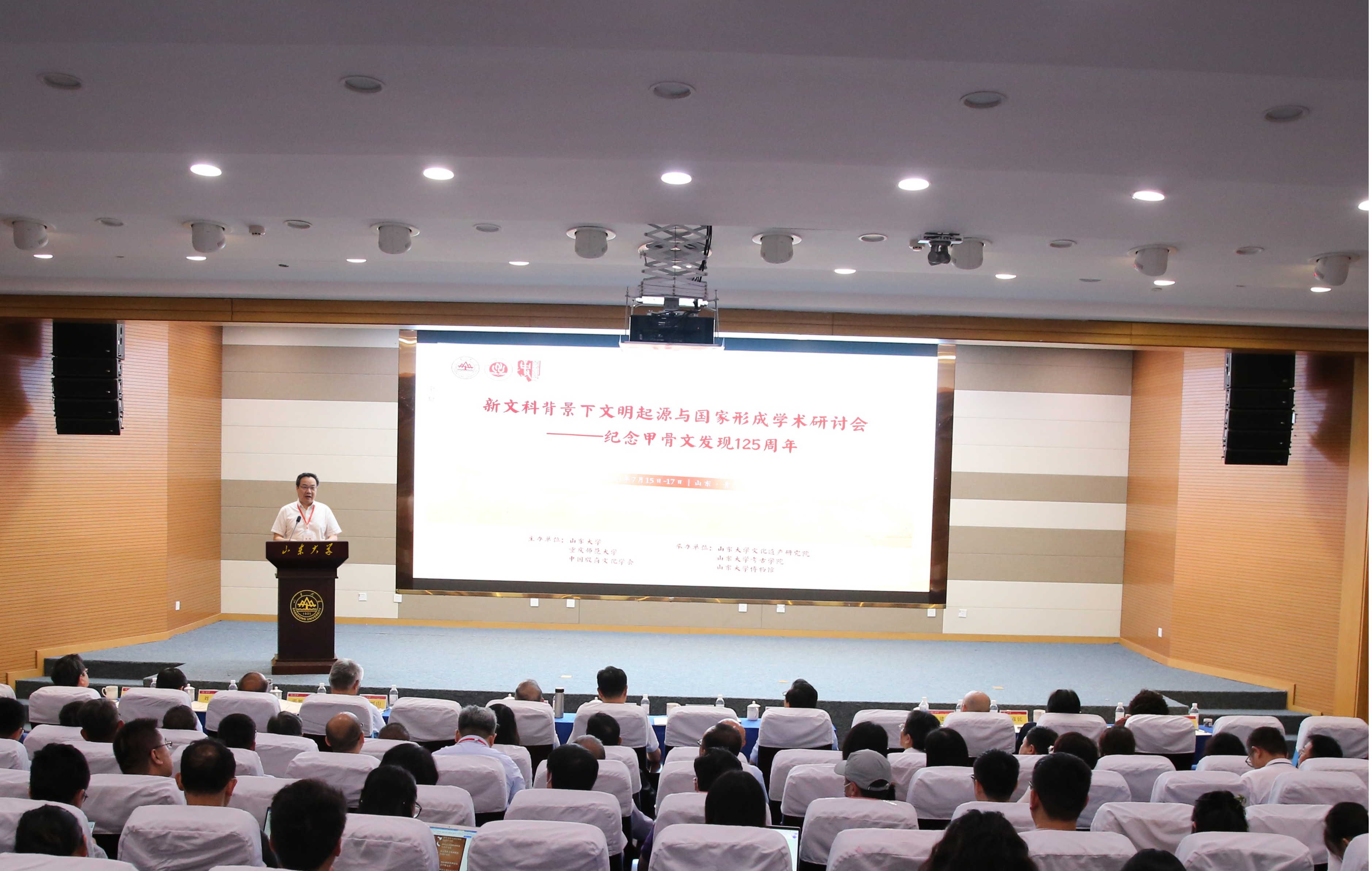 考古学科在探索中华文明起源与国家形成等重大学术问题、甲骨文发现与研究中的突出贡献。他表示,本次会议旨在推进学科互促互动、创新发展,赋能新文科建设,深化文化自信的积极作为和自觉行动,希望各位专家充分交流、深入探讨,积极分享文明起源与国家形成的前沿探索与最新成果,携手为加深甲骨文研究定基调、明方向、找路径、添动力,推动学科建设高质量发展。