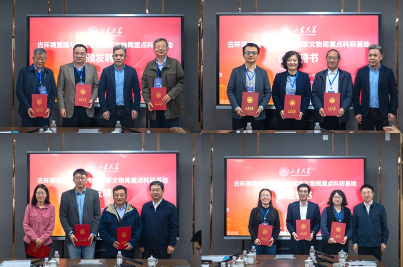 乔云飞、王君松为古环境重建与生业考古国家文物局重点科研基地揭牌。罗静、张志刚和刘少华为重点科研基地学术顾问、学术委员会主任委员、学术委员会委员颁发聘书。