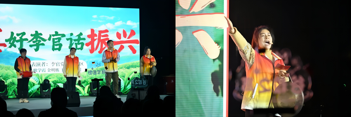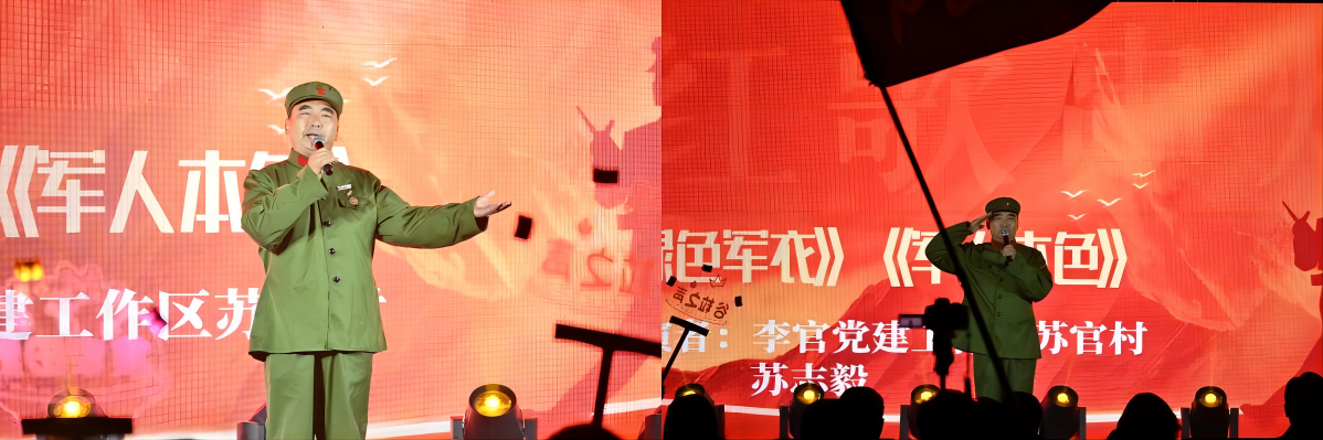 焦家村村民们载歌载舞,李官幼儿园孩子们稚嫩发声,声情并茂地诉说着关于这片古老土地的动人故事,为现场增添了更多感染力和地方文化色彩。其中,社区村民的《莓好李官话振兴》以幽默诙谐的三句半表达了丰收的喜悦幸福,红歌串烧《绿色军衣》《军人本色》带领观众走入那段激情燃烧的岁月,感受着军人坚毅不屈的精神品格;孩子们的舞蹈《中国范串烧》融入了浓郁的中华文化元素,活泼可爱的表演赢得阵阵掌声和喝彩。