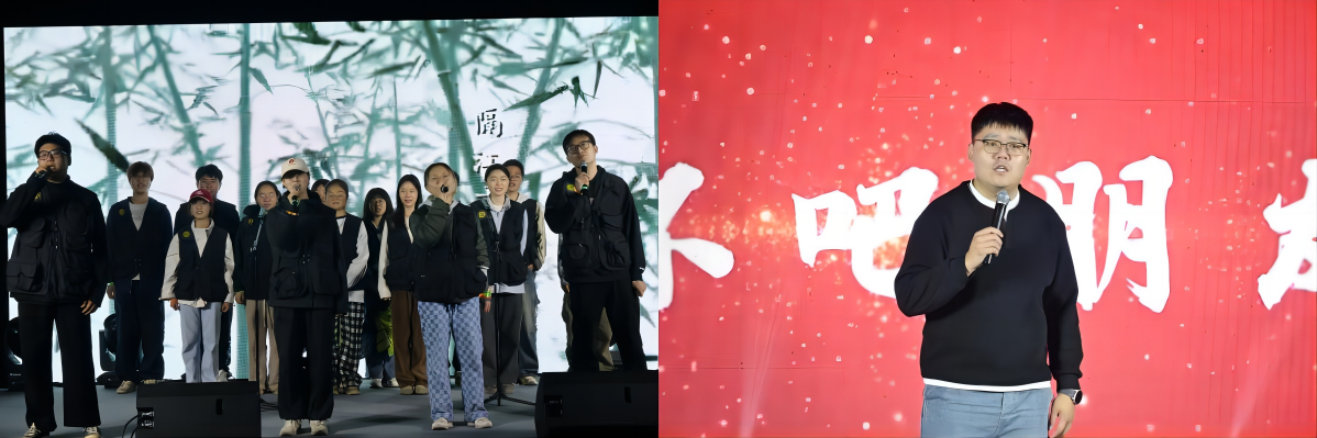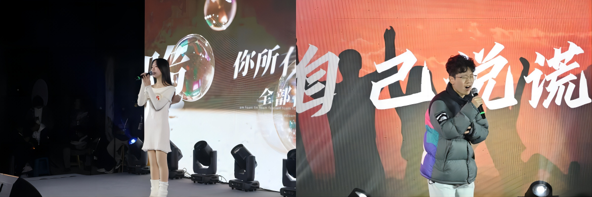 在各类节目表演的同时,“谷粒之声”决赛的各位选手也穿插其中,以饱满的热情和精湛的演唱技艺带来了一首首经典好歌。“谷粒红声”《有我》《紫荆花盛开》《天地龙鳞》唱响了红色经典的铿锵旋律,每一首歌曲都回响着厚重的历史记忆,每一句歌词都诉说着对祖国的热爱之情;“谷粒强音”《倔强》《路过人间》《泪桥》《凄美地》等歌曲奏响了时代强音的激昂篇章,丰富多彩的曲风背后是他们对梦想的执着追求与赤诚之心,展现了山大学子的音乐才华和对艺术、对生活的无限热爱与激情。