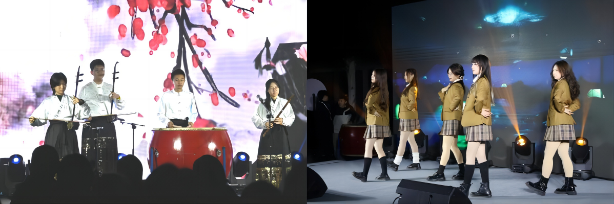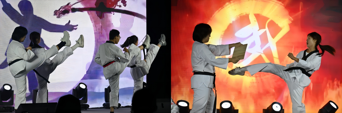 活动现场,开场舞《Ditto》以动感的节奏和舞姿,点燃现场热情;民族乐合奏《铁血丹心》《万疆》悠扬响起,传统与现代的交融展现了中华文化的博大精深;歌曲《走马》《无名的人》《青花瓷》歌声婉转、引人共鸣;《举杯吧朋友》瞬间引得现场欢乐大合唱,营造了浓浓的温馨氛围;戏剧串烧《长生殿》《伍子胥》《红娘》《除三害》传递出忠诚勇敢、善良正义的传统艺术内核;跆拳道《生生不息》、国标舞《LADY JIVE》、扇子舞《西厢寻他》等表演,将中华优秀传统文化融入现代艺术形式,充分展现了青年学生的蓬勃活力与无限热情。