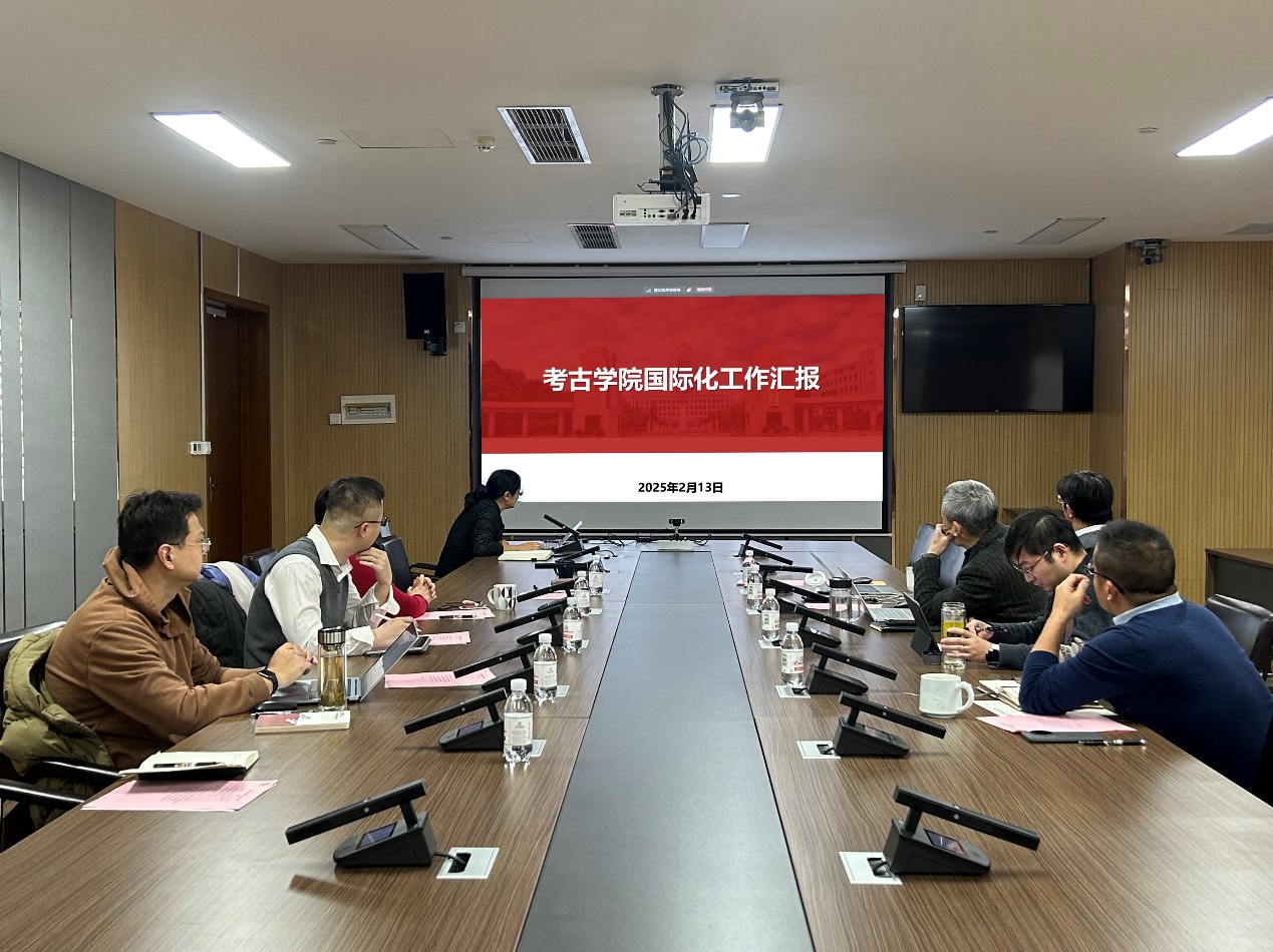 王芬首先对国际事务部一行的来访表示热烈欢迎,并表示此次调研与交流将为学院未来的国际化建设提供重要指导,期待与国际事务部进一步加强合作。陈雪香从国际合作、平台建设、人才培养和社会责任几方面汇报了学院国际化建设进展,并介绍了下一步工作计划。会上,我院王全玉教授、姜波教授和廖卫副研究员就冶金考古、海洋考古和旧石器考古等研究团队的国际化建设情况做了专题汇报。