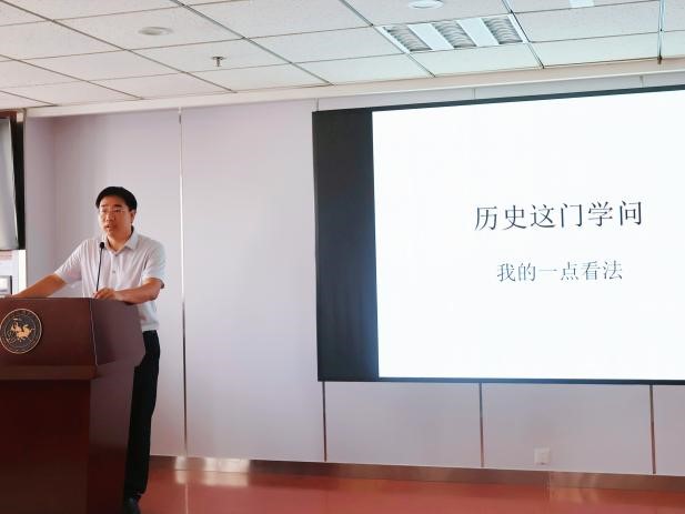 历史学院院长代国玺教授为2025级历史学院研究生新生进行了学科专业认同教育。他强调,历史学研究的核心在于拓展对过去的认知,并通过跨界研究的实例,阐述文献考据能力的重要性。他勉励同学们广泛阅读经典著作,为学术发展奠定基础。