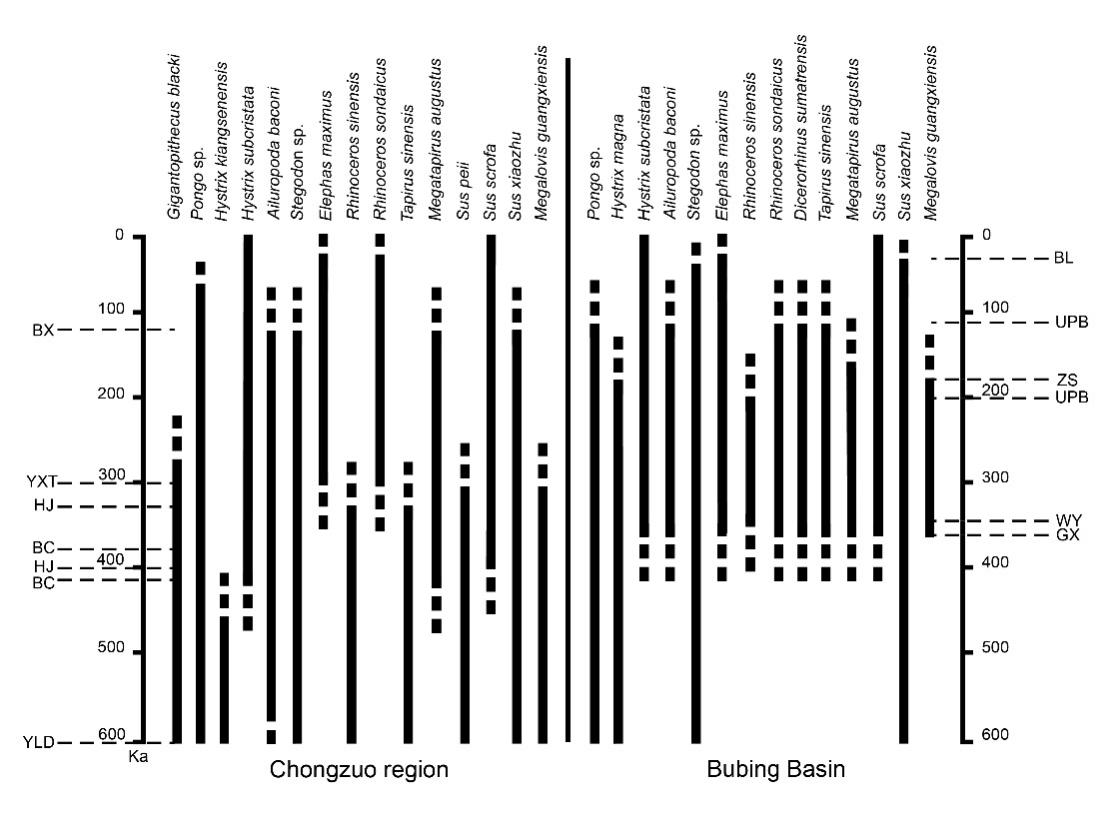 图3 布兵盆地和崇左地区动物群演化情况对比