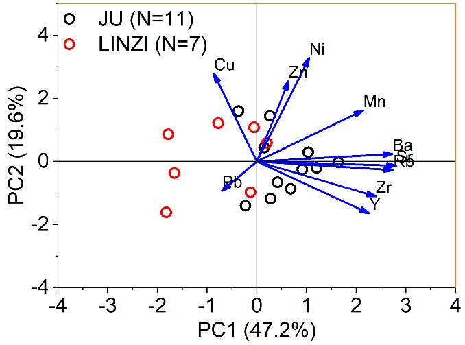 齐国以发达的工商业而闻名,也是铸币和钱范出土最多的地区之一。本文对莒国故城和临淄小城西门外两处齐国铸钱遗址出土的明刀范、大刀范和賹化范( 图 1 )进行了分析,使用扫描电子显微镜能谱仪、热膨胀仪、红外光谱、p-XRF、XRD 和比重天平等多种分析技术,结合模拟试验和尺寸测量,对钱范的材料特性、修复和再利用情况、钱范的标准性等问题进行了分析。