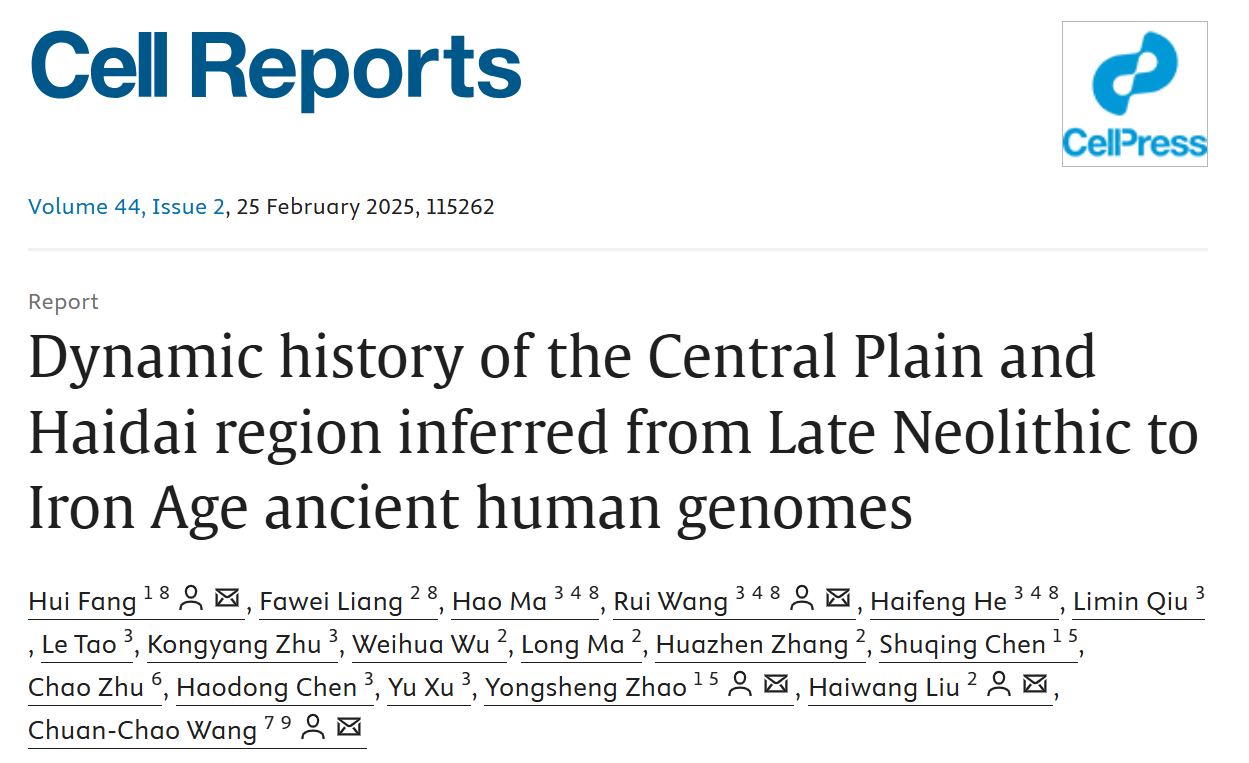 文化遗产研究院联合河南省文物考古研究院、山东省文物考古研究院、厦门大学人类学研究所和复旦大学现代人类学教育部重点实验室等单位在Cell子刊 Cell Reports 上在线发表题为“Dynamic history of the Central Plain and Haidai region inferred from late Neolithic to Iron Age ancient human genomes”的研究论文,通过对中原和山东地区新石器时代晚期至铁器时代31个古人基因组的测序和分析,系统揭示了中原与海岱地区龙山文化时期人群的遗传结构和交流互动历史。Cell Reports由Cell Press出版,为中科院一区和JCR一区TOP期刊,五年影响因子为8.5。方辉教授为论文第一作者,方辉教授、赵永生教授、河南省文物考古研究院刘海旺研究员、厦门大学博士生王睿、复旦大学和厦门大学王传超教授为论文共同通讯作者。香香腐宅