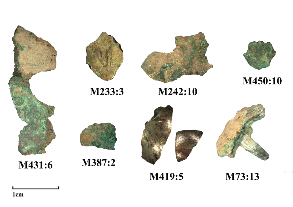 该研究通过综合运用金相显微镜、扫描电镜能谱分析(SEM-EDS)、X射线衍射(XRD)等科技分析手段对西安十里铺汉墓出土的7件鎏金、银铜棺饰进行系统的研究,揭示了汉代鎏金银工艺的材料选择策略与技术特征。