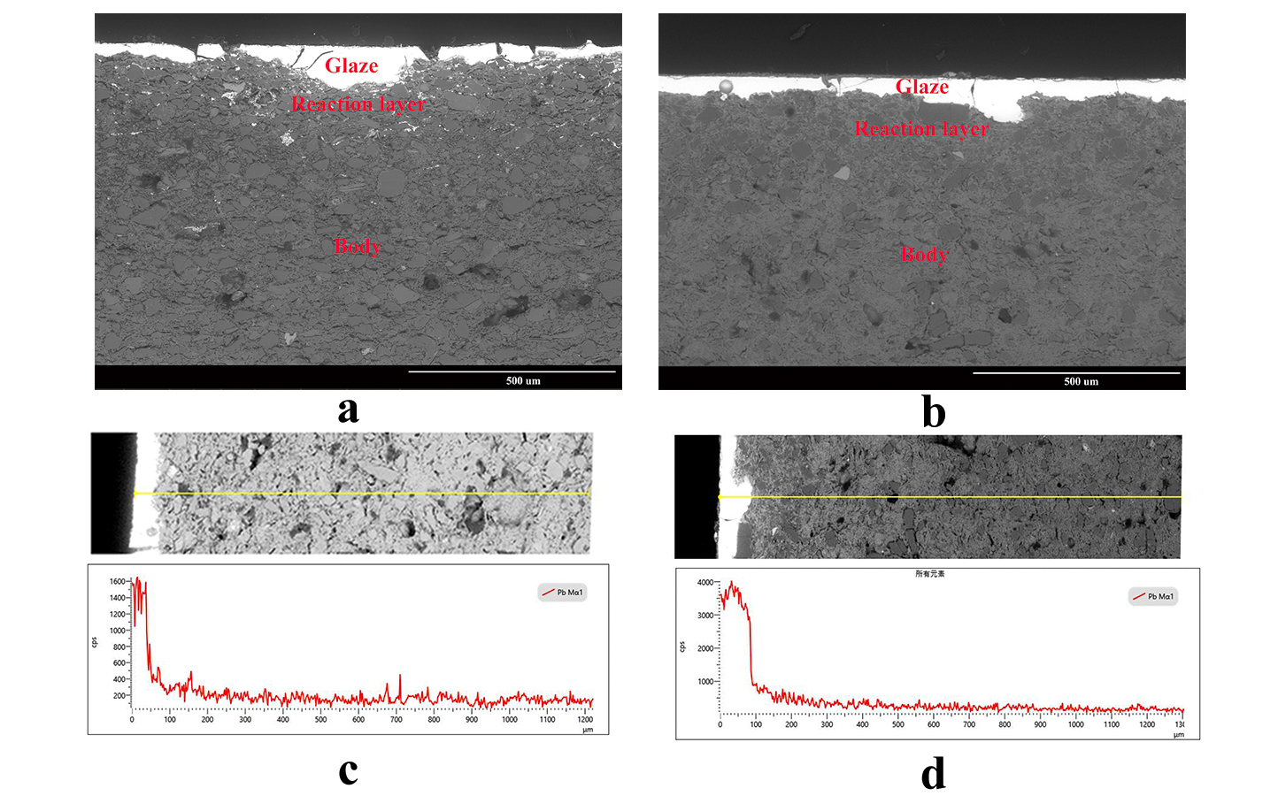 图二 战国晚期铅釉陶的微观结构及线扫描