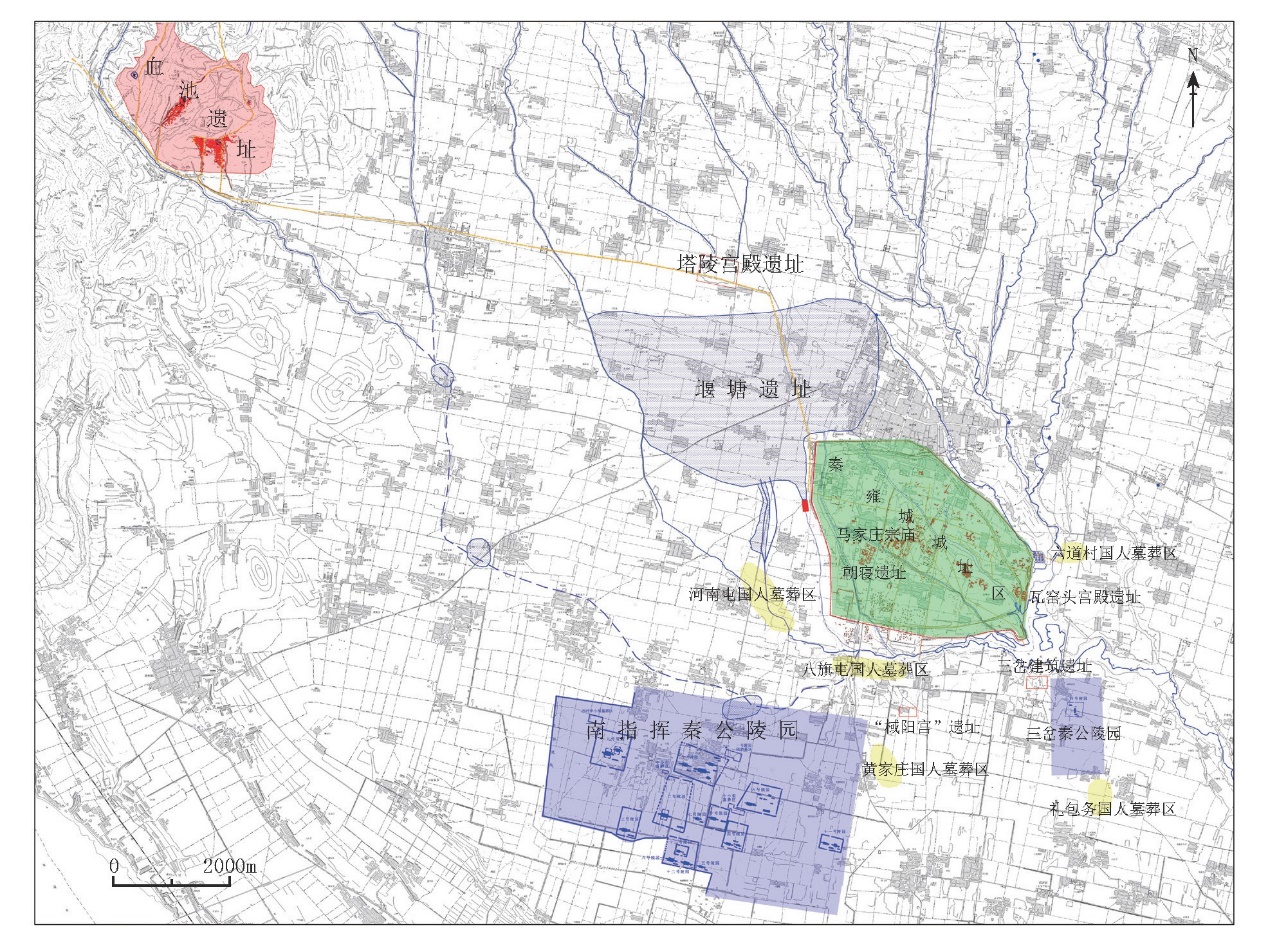 图2 血池遗址与秦雍城遗址位置关系图