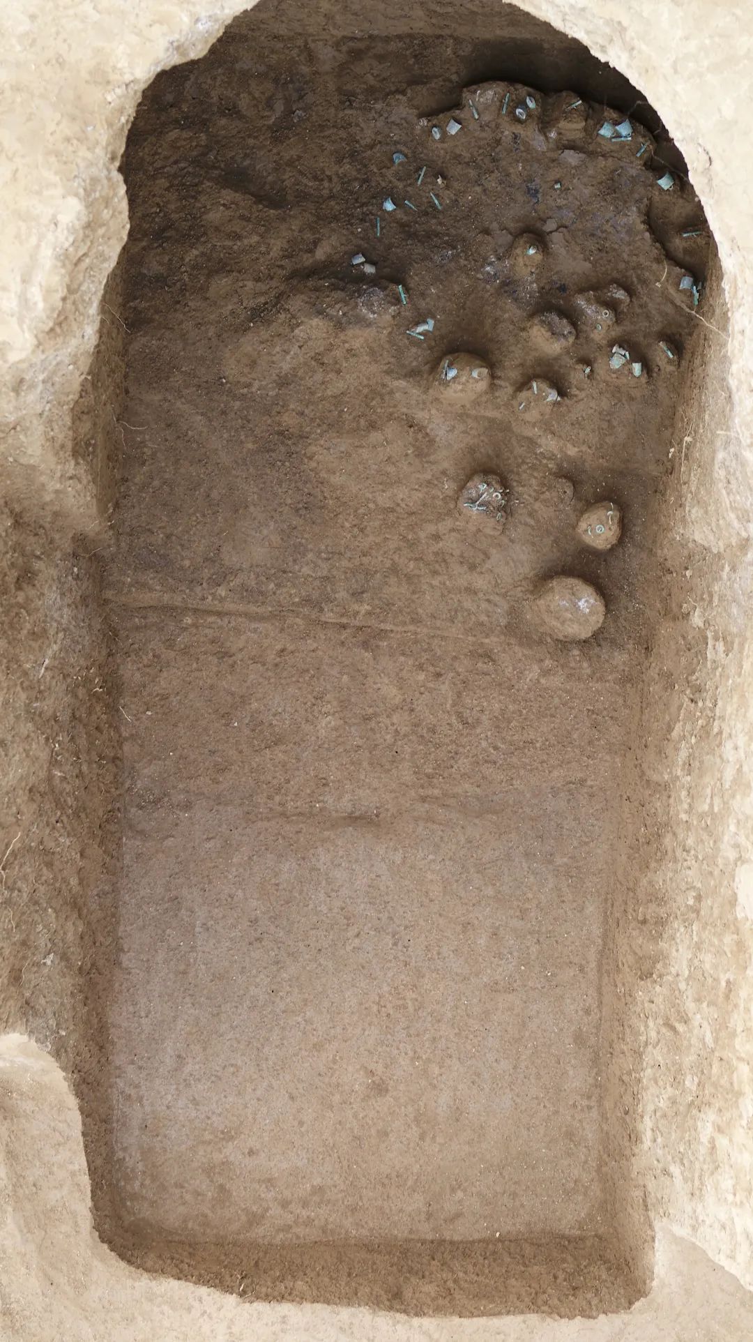 车马坑根据坑的形制、大小可以分为三类。Ca型祭祀坑目前仅发现1座,为超大型长方形车马坑。长8.7、宽7.9米,深度超过12米,被盗扰,盗洞中出土金、玉、铜质车马器及马骨,打破A型祭祀坑。Cb型祭祀坑,为大型长方形祭祀坑,长3.8~4.7米,宽3.2~3.5米,深度达8~10.7米。皆被盗扰,但出土遗物丰富,坑底皆放置大型木箱,木箱内放置以金、玉、铜质车马器装饰的高等级车马,车马器形制与秦公一号大墓车马坑出土的车马器几乎完全一致,判断此型祭祀坑年代为春秋中晚期,打破A型祭祀坑。Cc型祭祀坑为小型长方形车马坑,规模略小于Cb型车马祭祀坑(长3.6~395、宽2.6~3.0、深1.9~3.95)。坑内皆放置大型木箱,木箱内放置车马一驷。部分车上髹红漆且有精美蓝色彩绘,车马上皆有铜车马器,车舆前部有男女玉人各1件,玉璜、玉琮各1件,弩机1件,箭镞1组。从出土器物判断,此型祭祀坑年代约为秦汉时期,打破E型洞室祭祀坑。以上三类车马坑使用的都是真车马,可能就是文献所载“路车一乘”。