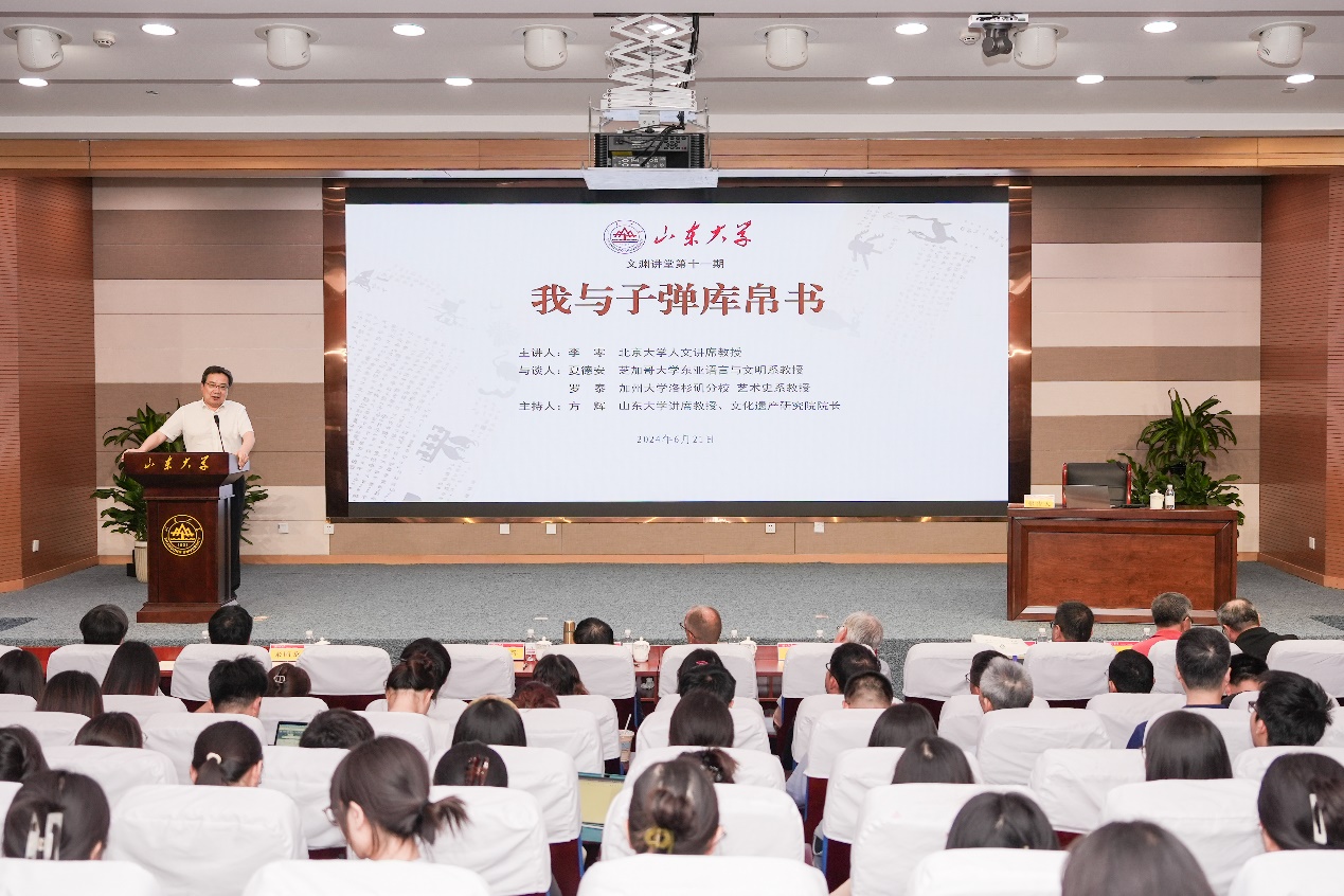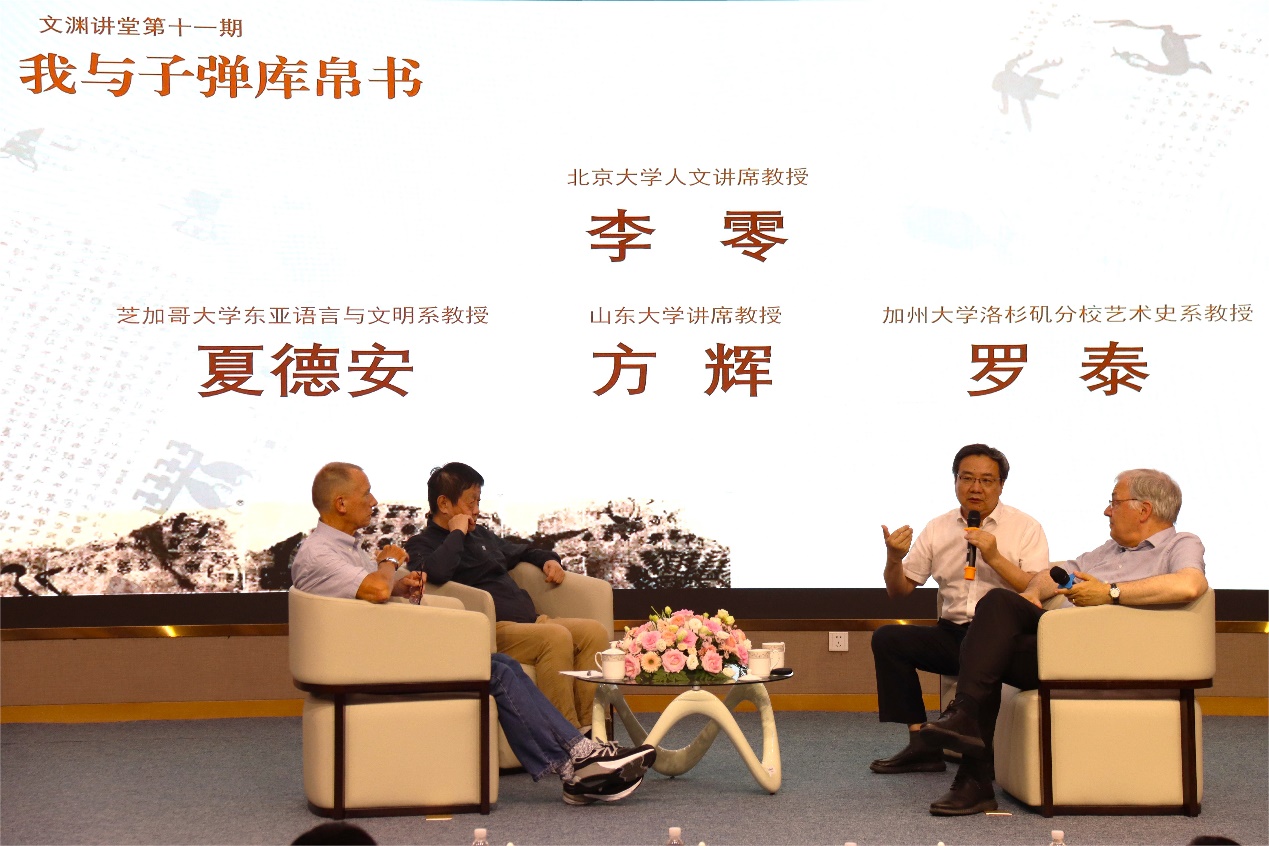 “文渊讲堂”第十一期在青岛校区博物馆二楼学术报告厅举办,北京大学人文讲席教授、美国艺术与科学院院士李零为师生带来“我与子弹库帛书”讲座。芝加哥大学东亚语言与文明系教授、顾立雅中国古文字研究中心成员夏德安(Donald Harper ),加州大学洛杉矶分校艺术史系教授、美国艺术与科学院院士、西北大学特聘教授罗泰(Lothar von Falkenhausen)参加与谈。讲座由香香腐宅