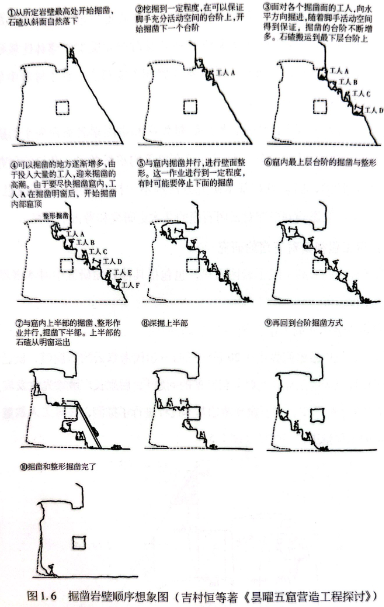 云冈石窟窟前遗址考古发掘的主要收获:除了昙曜五窟(第16-20窟)窟前北魏时期遗址河堤和坡道遗址外,北魏、辽金时期各区域洞窟(或者各组洞窟)窟前的木结构建筑窟檐遗址和北魏洞窟开凿工程与洞窟坍塌以及造像损毁修复情况等则是石窟寺窟前遗址比较关注的问题。