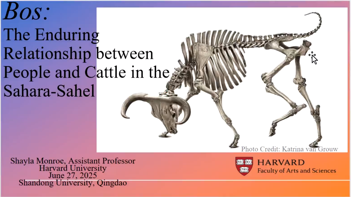 哈佛大学助理教授Shayla Monroe发表题为《牛——撒哈拉-萨赫勒地区人与牛的持续关系》的主题汇报,聚焦环境压力下的畜牧业考古研究。更新世晚期,撒哈拉地区经历了从湿润到干旱的巨大环境转变,导致大量偶蹄动物南迁,但原始牛(Bos primigenius)却留在此地,持续与当地人群产生互动。为探究这种互动关系,她结合了壁画、动物考古学、DNA等多个方面的证据。从尼罗河谷发现的人与原始牛互动的壁画来看,二者互动最早可追溯至公元前13000年,并显示出原始牛在与人的互动中除具有食用价值外,还在仪式、宗教方面也有重要价值。结合动物考古学证据可知,这种原始牛至少持续存在至埃及罗马时期,意味着在黎凡特家牛引入后,原始牛与人类关系仍未中断。DNA证据进一步揭示,在家牛引入后,原始牛通过与家牛杂交的方式,对后续的家牛产生影响。此外,受到生态屏障的限制,欧亚的牛无法适应非洲的气候与疾病难以深入非洲大陆内部,而印度瘤牛更具有抗病性,引入后在非洲大陆广泛传播。最后,她指出,这种互动自狩猎采集阶段就早已发生,其影响至今仍在社会、仪式活动中体现。