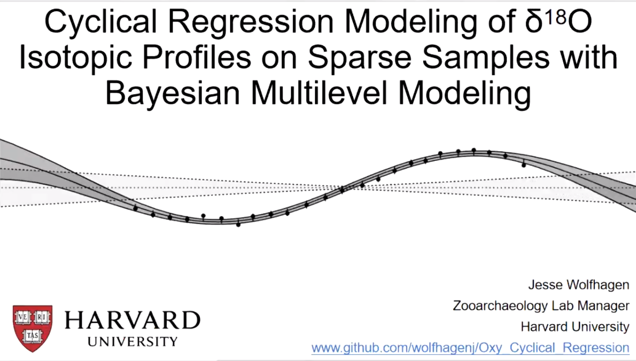 哈佛大学人类学系Jesse Wolfhagen博士带来题为《δ18O同位素周期性回归模型的贝叶斯建模》的学术报告。先前有学者对羊的牙齿进行牙釉质δ18O序列周期性回归分析,来获取羊群的出生季节以及当时环境等相关信息。然而这种传统的周期性回归模型严重依赖采样密度,而考古实践中常常受限于样本保存状态和分析成本。因此,Wolfhagen博士将贝叶斯分析应用于传统的周期性回归模型当中,引入先验分布约束参数范围(如振幅、周期、出生季节变异性),在大幅减少单颗牙齿所需样本量的同时,也能够较为精准地预测缺失的数据。模型验证采用了10只Rousay绵羊的δ18O序列数据集,稀疏采样的结果表明,即便单齿样本量低至5点,模型仍能够预测出个体的出生季节,还可以量化出生峰值的概率分布。这一方法极大拓展了δ18O分析在判断畜群出生季节分布以及重建繁殖策略等研究领域的应用潜力。