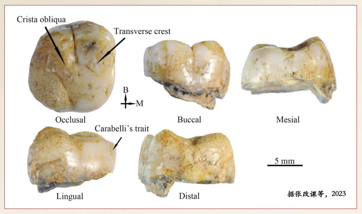 图四 洛南龙牙洞早期智人牙化石(右上第一臼齿)