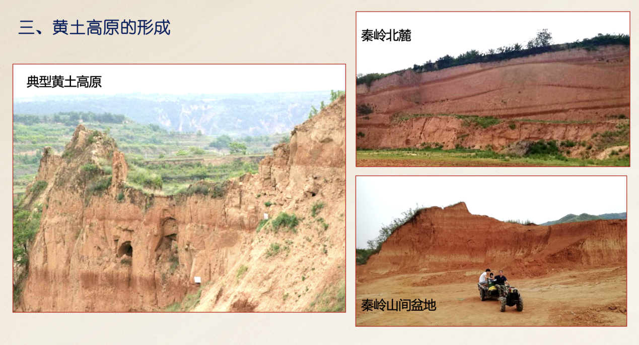 讲座开篇,张老师以陕西“地理中心”与“文明发祥地”的双重定位切入,从秦岭隆升、渭河盆地演化以及黄土高原形成三个方面,解析陕西地区环境的演变:作为“中央水塔”也是南北地理的分界线的秦岭,其隆升与新生代以来的板块运动密不可分,呈现出清晰的阶段性特征:早更新世已有一定规模,但尚未让南北气候环境形成显著分异;中更新世,秦岭海拔升至 2000 米左右,南北气候差异逐渐凸显;到晚更新世,秦岭平均海拔已达 2000-3000 米,南北气候格局基本趋近现今。秦岭对区域环境的塑造作用尤为显著:形成南北 6-7℃温差、200 毫米降水差以及温/亚热带气候分野,植被景观也随之呈现出鲜明的差异。