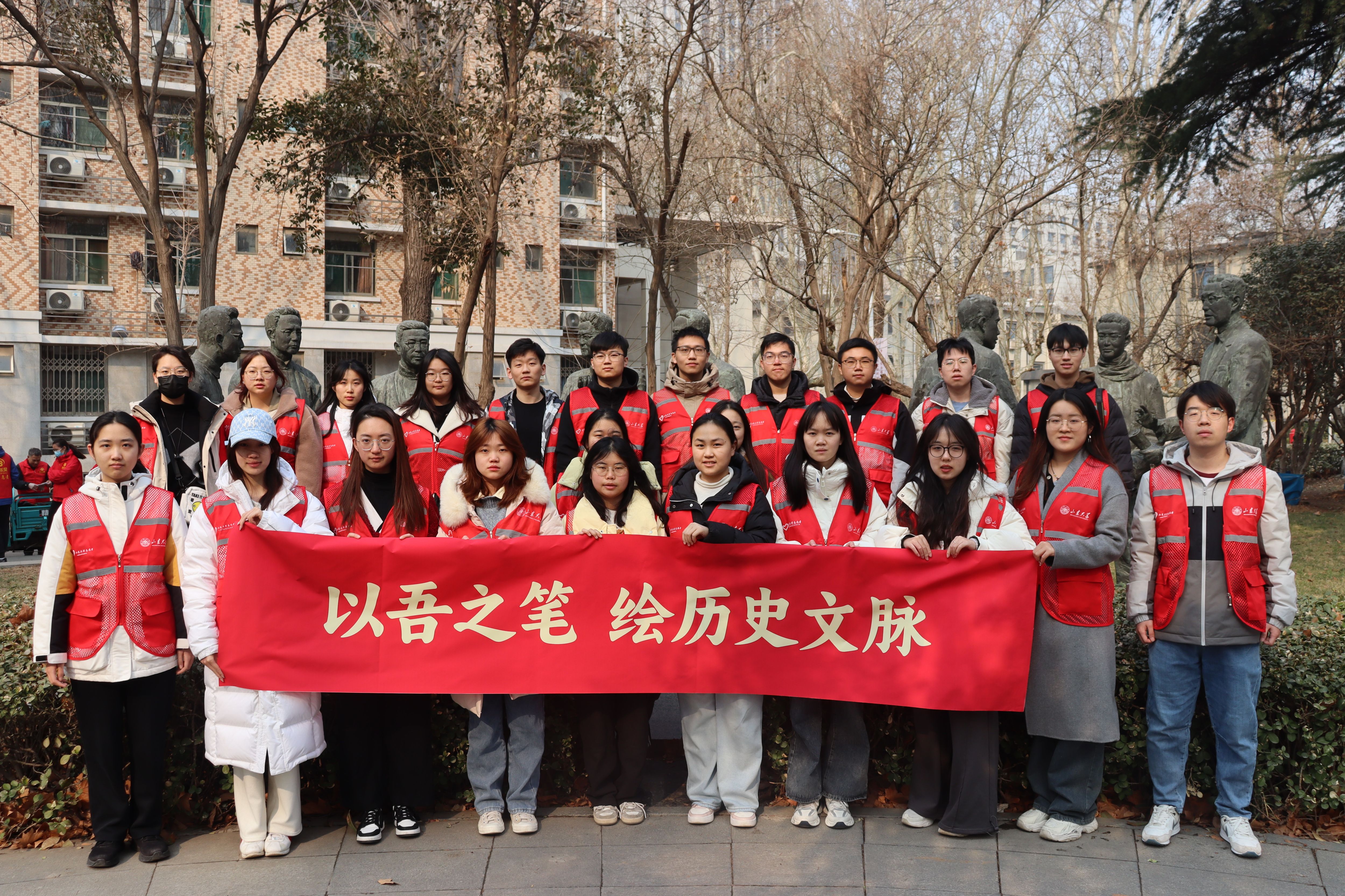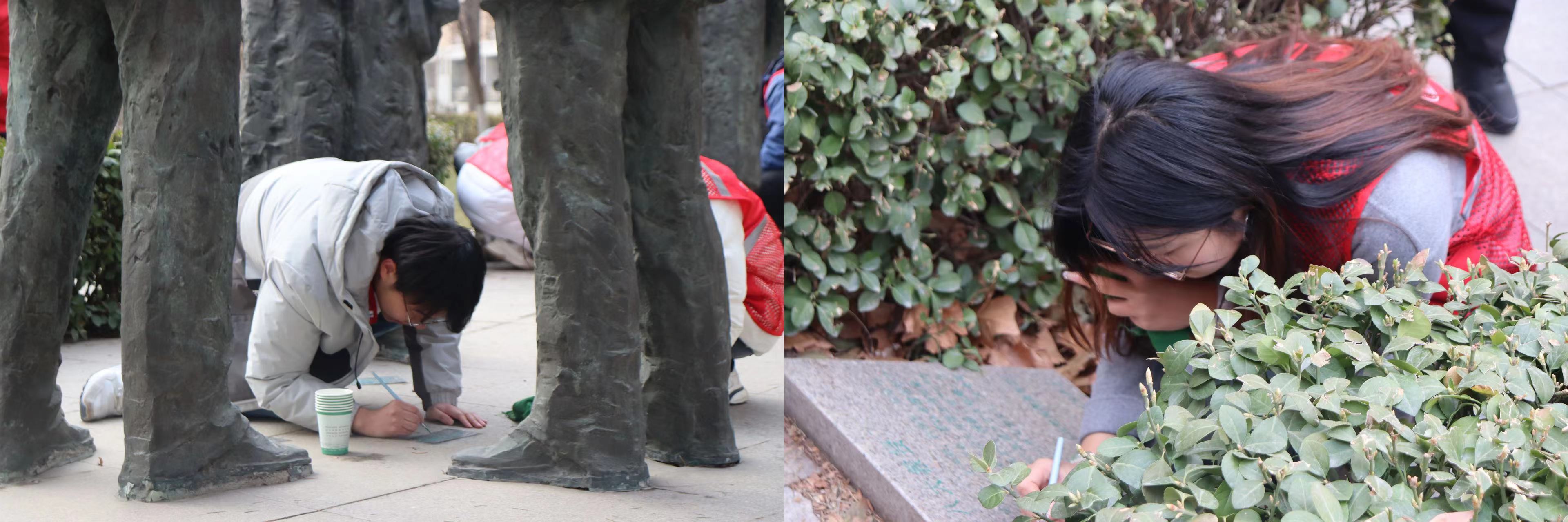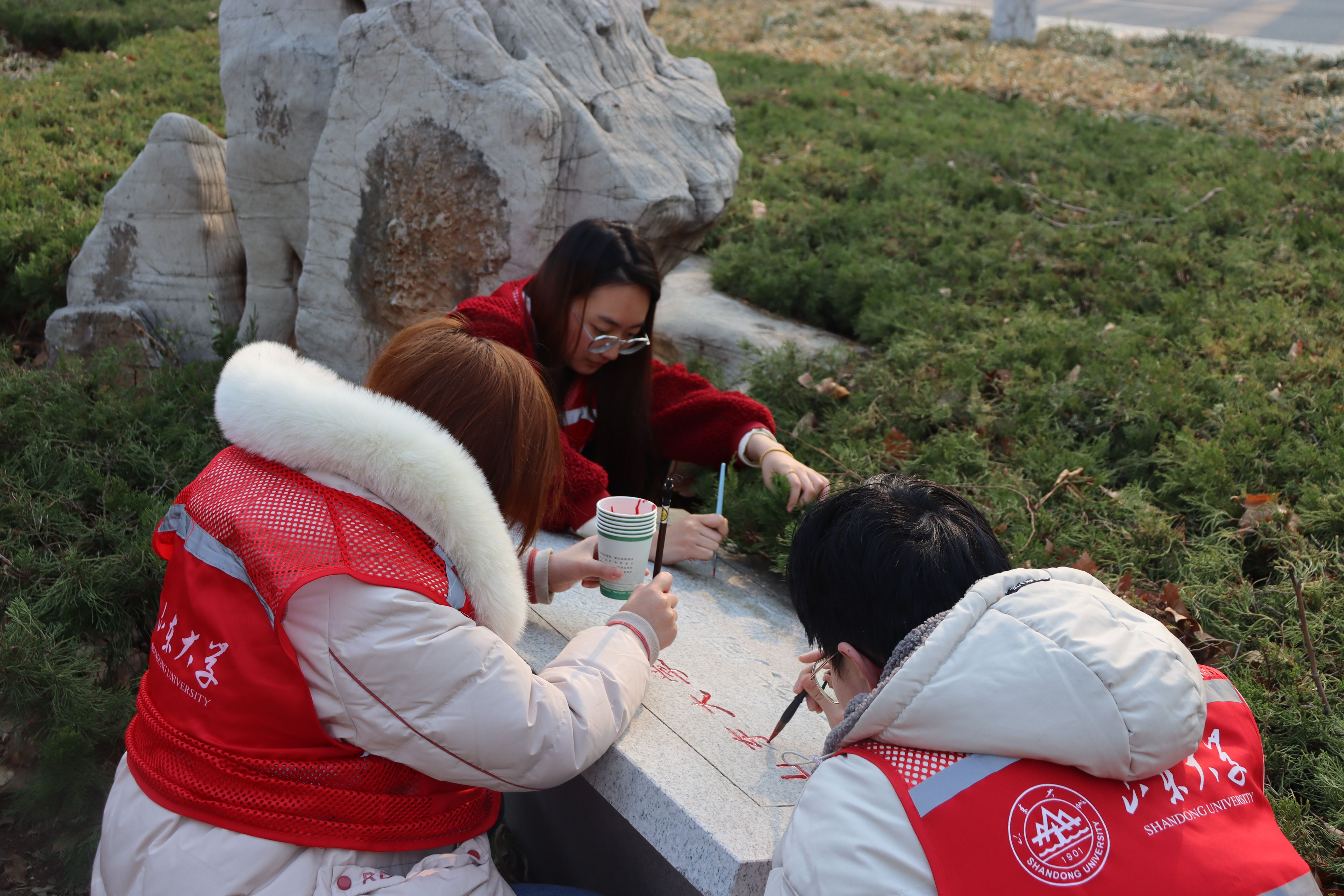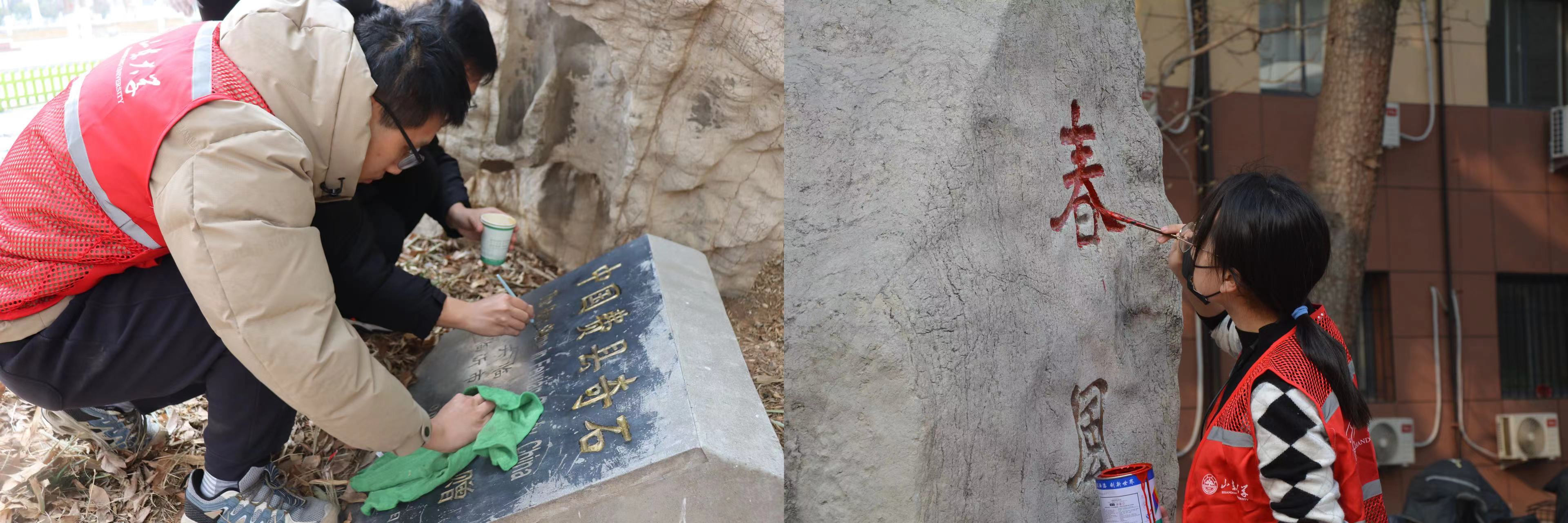 开展“以吾之笔 绘历史文脉”——山大校园景观雕刻铭文补色主题志愿服务活动。