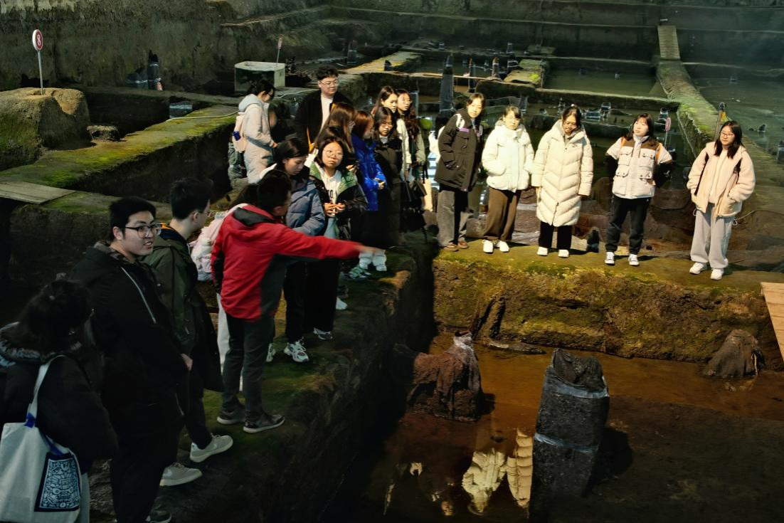 本科2021级考古班学生在考古学系陆青玉、付龙腾和陈琼三位老师的带领下,前往浙江杭州开展研学活动。在整个研学活动中,师生先后在中国丝绸博物馆、良渚考古工作站、良渚博物院、良渚古城遗址公园、井头山遗址发掘基地、田螺山遗址现场馆、河姆渡遗址公园、浙江省博物馆新馆、南宋官窑博物馆等多个单位进行参观实习。