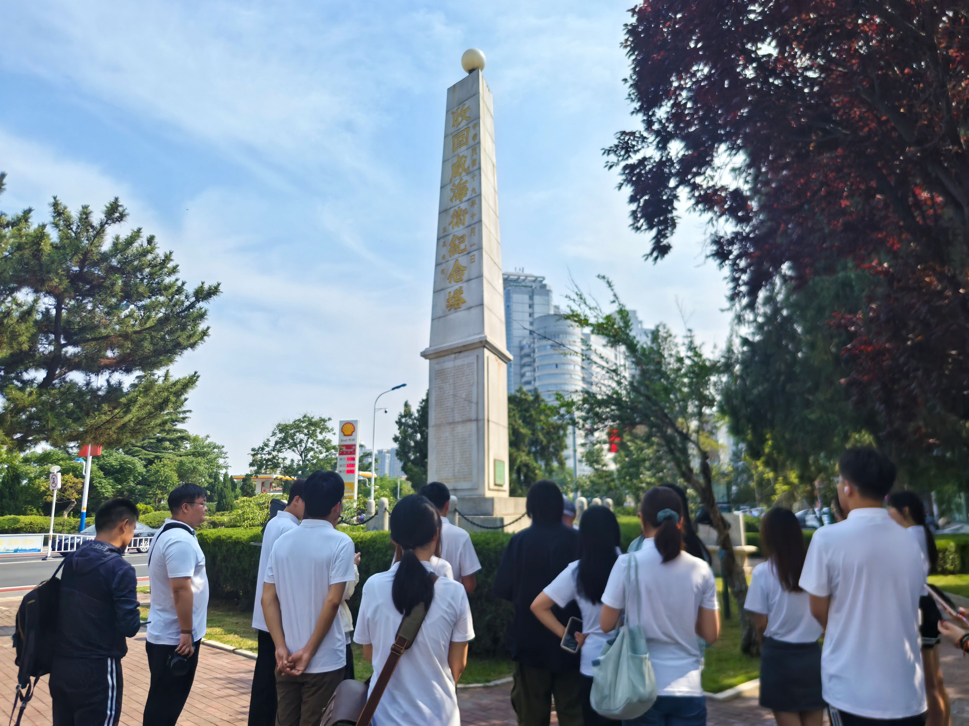 收回威海卫纪念塔位于威海市区文化东路与海滨路交汇处的三角花园。1898年7月1日,英国逼迫清政府签订了《中英议租威海卫专条》,强租威海卫,至1930年10月1日,中国政府正式收回威海卫,并于1931年初,南京国民政府主持修建纪念塔,以纪念这一伟大的时刻。该塔身高32英尺,以此象征着威海卫32年的屈辱历史。同学们围在塔周围,认真观看塔身文字,细数周围的石柱。在参观收回威海卫纪念塔过程中,不忘国耻、振兴中华再一次以具象化的形式展现在同学面前。同学们深刻感受到,要厚植爱国情怀,持续为民族复兴、国家强盛持续贡献力量。