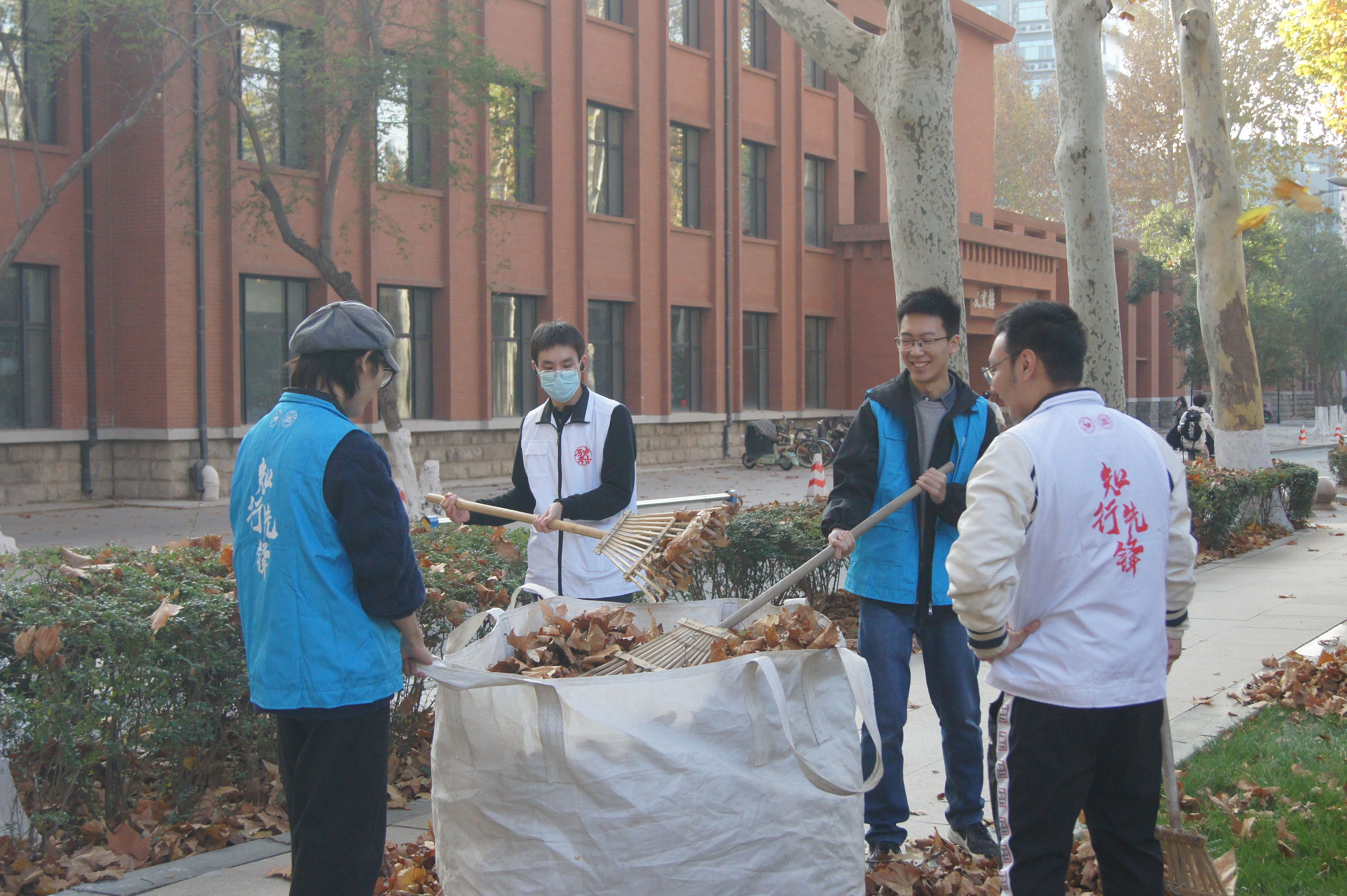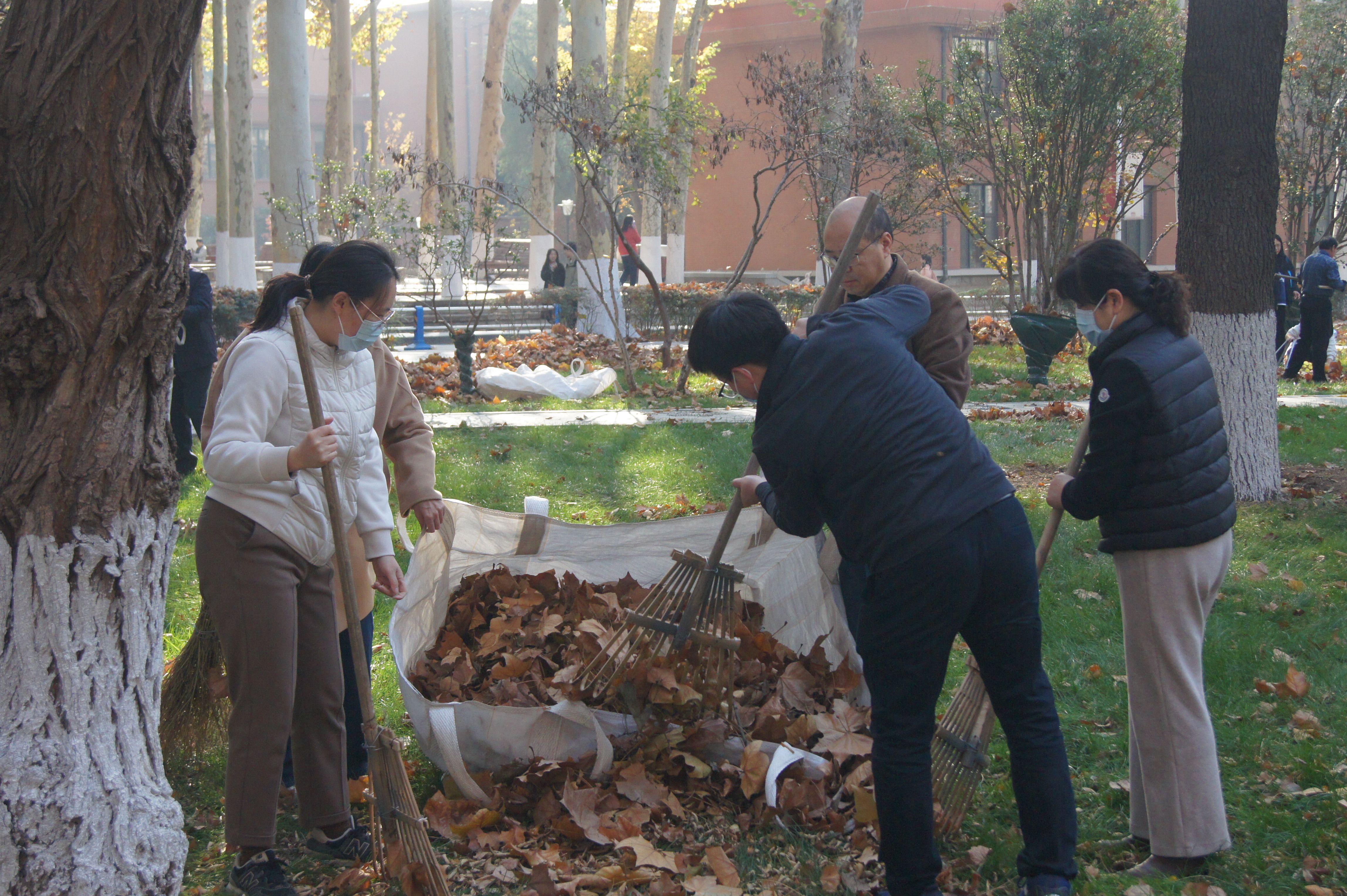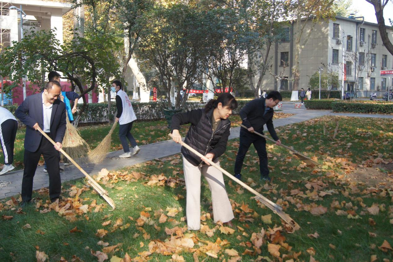 后勤保障部机关党支部联合开展校园落叶清扫主题党日活动。