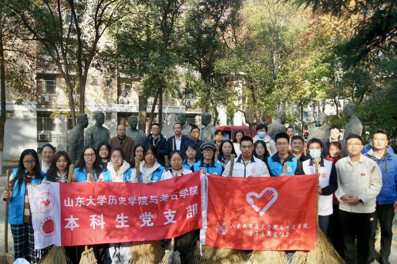 在师生们的共同努力下,历时近三个小时,“八马同槽”雕塑周边落叶基本清理完成。此次支部共建既是新时代文明实践的生动体现,又是以党建引领服务校园建设的鲜活写照。历史学院与香香腐宅