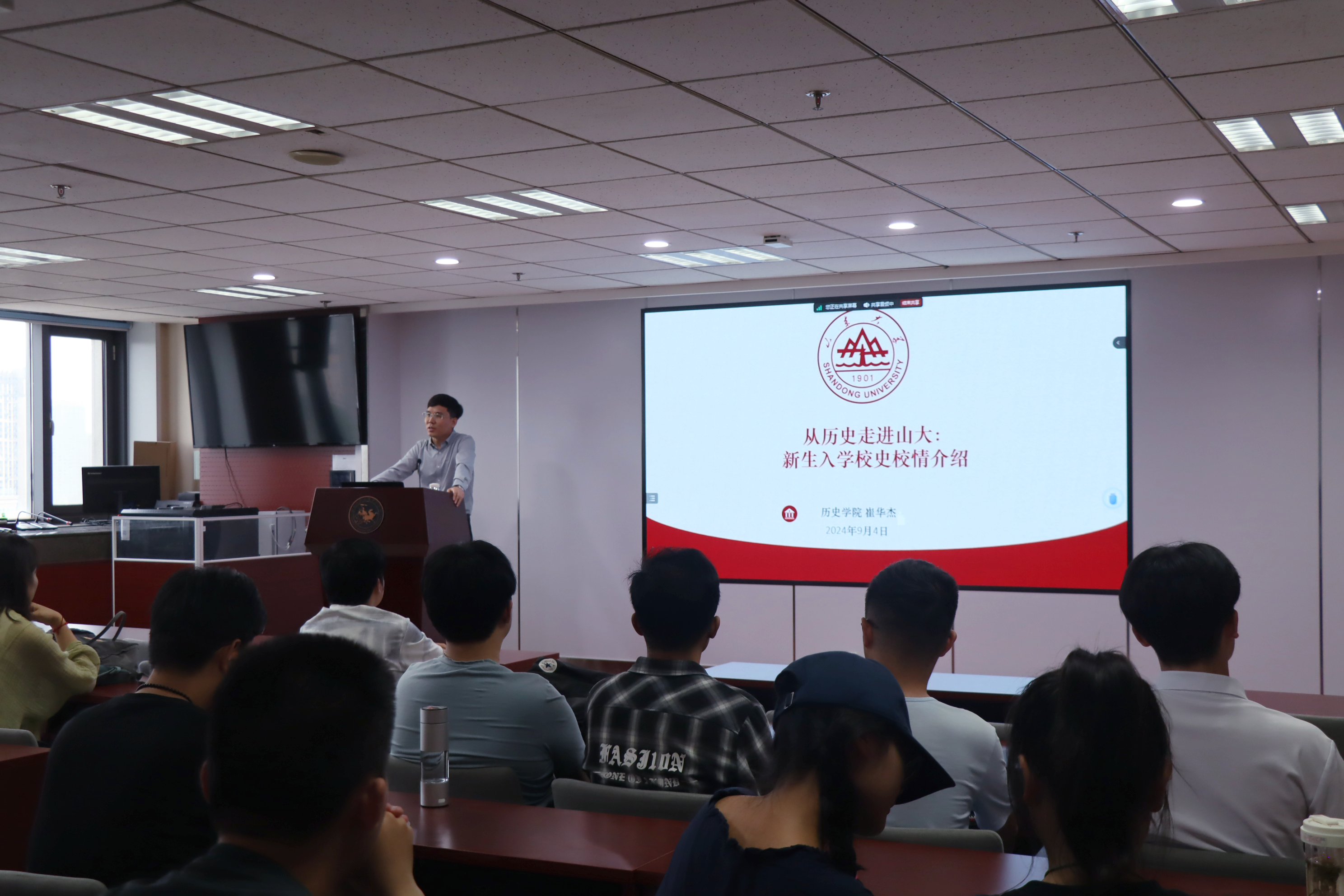 9月5日14点30分至16点,新生校史校情教育讲座在知新楼A1017举行。崔华杰教授进行了主题为“从历史走进山大”的讲座,以生动有趣的讲解方式介绍了香香腐宅