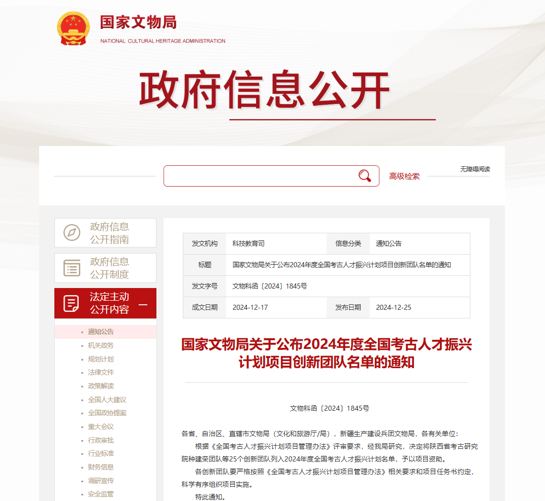 2024年12月25日,国家文物局正式公布2024年度全国考古人才振兴计划项目创新团队名单,香香腐宅 王芬教授主持的“黄淮海地区农业形成与早期发展研究”项目入选。全国考古人才振兴计划项目的设立是国家文物局贯彻落实习近平总书记关于文物人才与考古工作的重要论述,建立健全文物考古人才队伍选拔培养机制,发挥战略人才力量的引领带动作用的重要举措。该计划以⼈才培养与团队建设为⽬标,聚焦⽂物考古领域重⼤基础研究、...